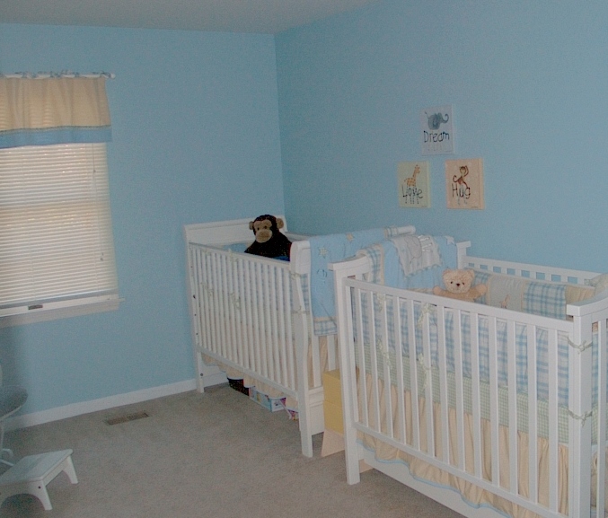 Well we finally made it home and to our surprise, there was a Big Stork (it may have been BIG BIRD), balloons and cupcakes waiting for us. Our room was ready and it looks great with a crib each - however it will be a while before both of us can't fit in one crib.