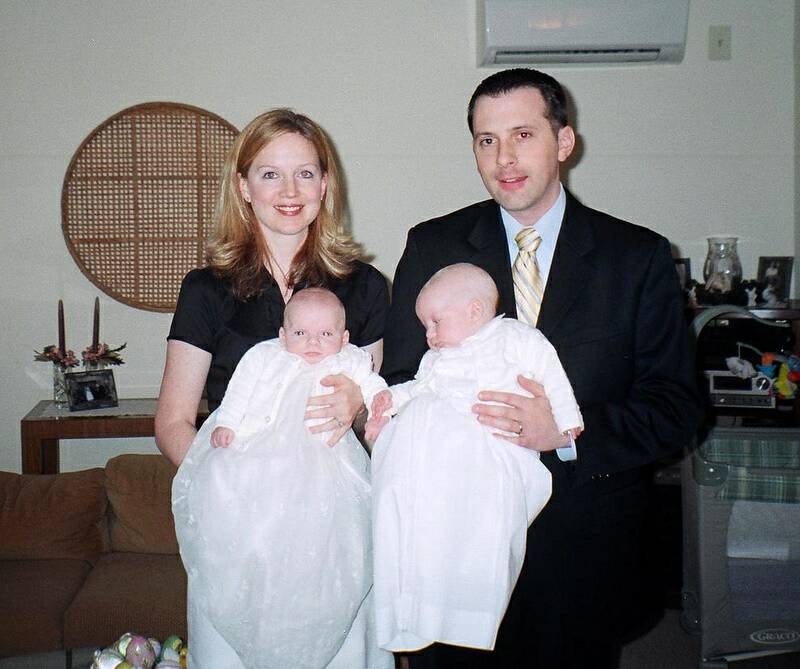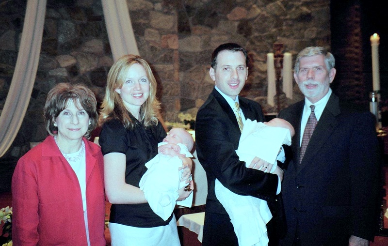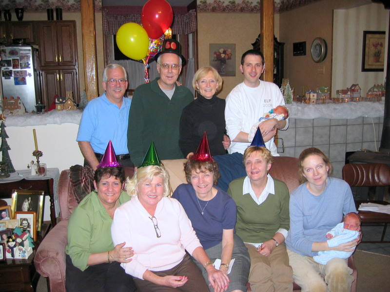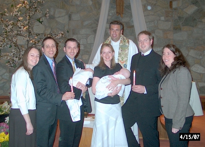 Aunt Jess, Uncle Greg, Daddy (holding Christopher), Mommy (holding Daniel), Father Larry, Uncle Michael, and Aunt Laura
