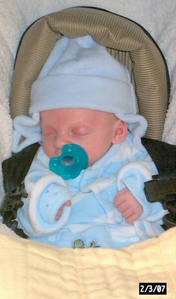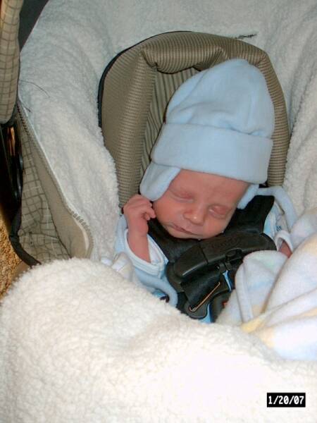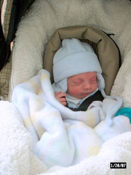We are on the way to see the doctor again - our 3 week check up. When we left the condo we saw our 1st snow, pretty nice and cold. We are both doing good - hopefully the doc agrees. Where back. The doctor said we are doing Great - I weight 5 pounds, 2 ounces and 19 inches long. Christopher is 5 pounds, 1 ounce and 18 1/2 inches long and he thought he was going to be the biggest because he was born 1st. Well time to eat and sleep - will update in a few days - should be interesting, the Woburn, MA relatives are coming for a visit -  Aunt Jess and PRESENTS! and Uncle Gregory.