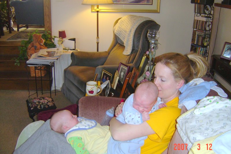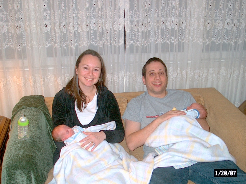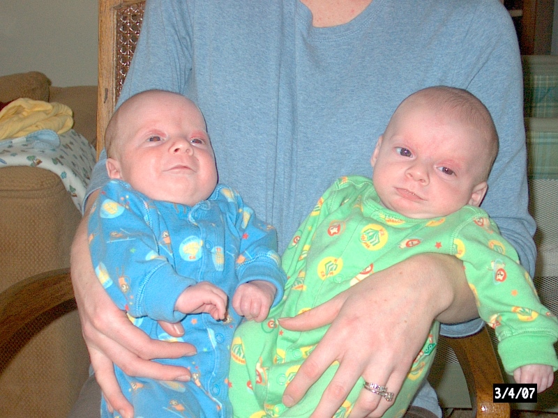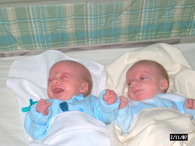 Daniel here, Christopher and I are just hanging out with Mommy, Daddy and Grandma, trying to put on a few ounces so that we can go home tomorow.