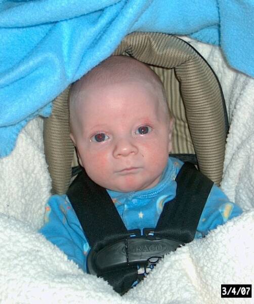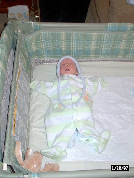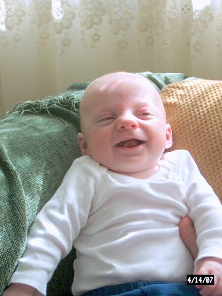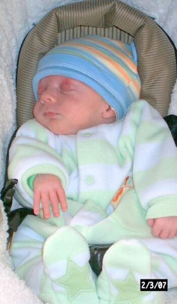 Hello everyone. It been a few days since we had anything to say. We have been taking it easy, putting on the ounces and keeping Mommy and Daddy awake. At my last checkup the Doc heard a small heart mummer and decided that she would "err" on the side of caution and have Mommy and Daddy take me to see a pediatric cardiologist in St Peter's Hospital in New Brunswick. While Grandma watched Daniel at the condo, the 3 of us set out for St Peter's. I am happy to report that the visit went very well and everything is fine and the mummer is insignificant.  It was great news, and Mommy and Daddy breath a sigh of relief - as well as our grandparents, aunts and uncles."