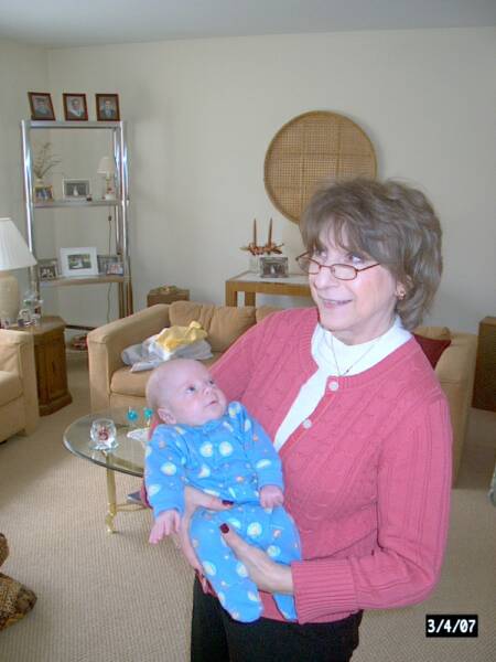 Traveling again, this time a 2 stop trip and a sleep over. We went to Grandma and Pop-E's in Westfield for dinner, since they were going to watch us while Mommy and Daddy went to a 7pm meeting at St Helen's to learn about our christening scheduled for April 15th - no one will be able to forget that date. Daniel ate at  4:30 and I was feed at 5:30 and normally we then play for a little while and then take a nap until it is time to eat again - GREAT LIFE.