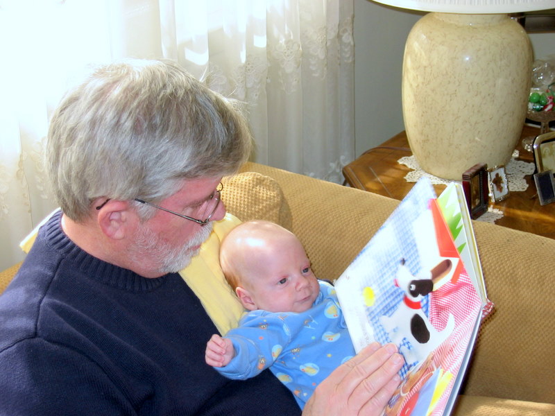 After shopping, we went to Grandma and Pop-E's house for lunch. Grandma was holding me and Pop-E was reading Daniel a book he had brought. It had birds, dogs, horses, and more and it rhymed. Pop-E also read me the book later in the afternoon