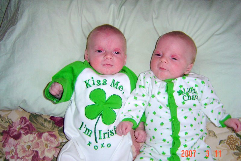 Well the big day finally arrived, that's right, St Patrick's' Day, and Daniel and I could not wait to find out what Daddy had planned as the surprise.  Mommy finally told us that was were going to see our new friend, Megan ( she is only 2 and 1/2 weeks old) in Hoboken, where we heard they really know how to celebrate St Patrick's Day. Guess what, Daddy decided that more basketball was the way to celebrate - we do not know which is worst watching all day basketball or the stock report. And this was after we were good for 2 whole days - where is the justice Well, that was our St Pat's celebration - sitting at home watching guys run up and down the floor in shorts and tattoos - well at least we got to one St Patrick's Day party.