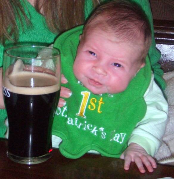 A few days later, we heard from Megan (through the BABY GRAPEVINE) that she was out celebrating St Patrick's Day, the old fashion way - with a pint of Guinness. Nice going Dad! Is Megan's Mommy and Daddy even IRISH? Well, this is it for now, we are going to find out when St. Stanislaw's Day is, maybe Mommy will have something better planned, then watching basketball!