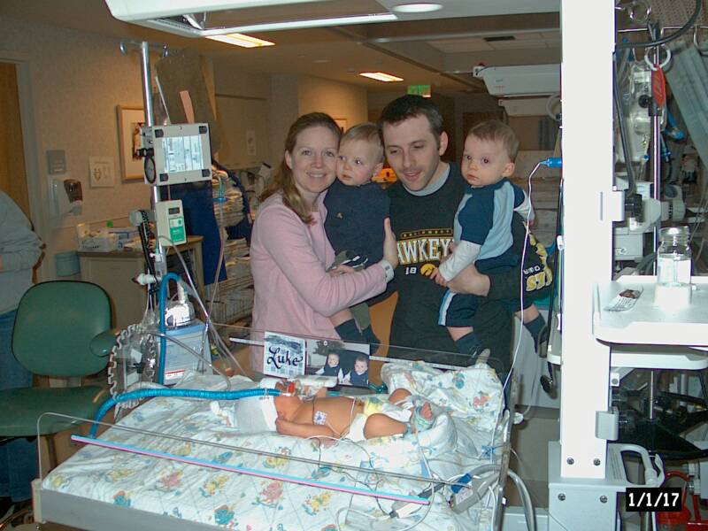 That's all we heard the rest of the day and were finally "put" down for the night. When we woke up the next morning, Grandma and PopPop told us we now had a new brother named Luke. He was born on 2/15 at 12:51 in the morning, while we were sleeping.