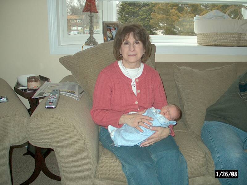 Grandma, Pop-E and Cousin Angela stopped over to see Luke and us. Luke was doing his favorite thing - sleeping and we were doing ours - eating. This was the 1st time Angela saw Luke and it is the 1st time that Christopher did not cry when he saw her.