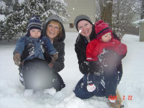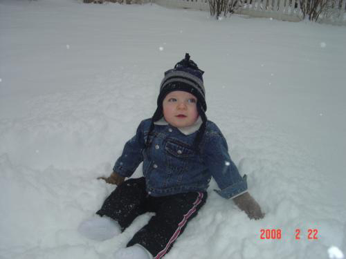 Big snow fall last night and we were out in it early with Mommy, Grammy and PopPop. This was our the 1st time we were in so much snow . Next time our 1st snowman.