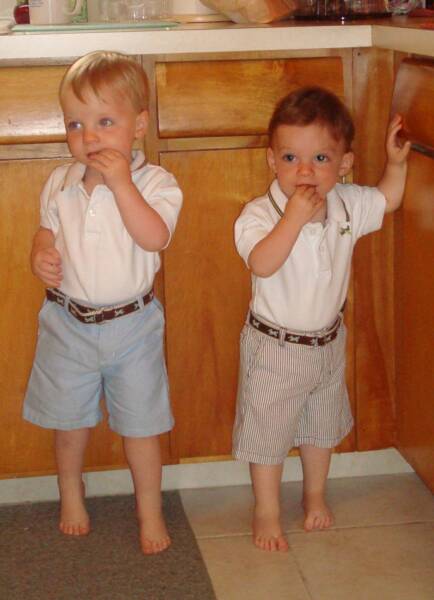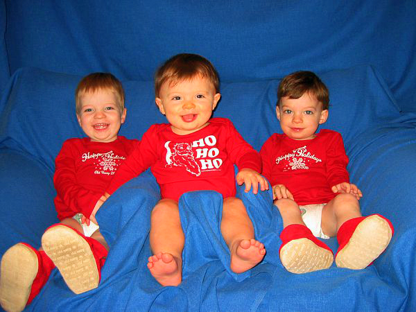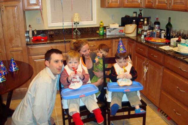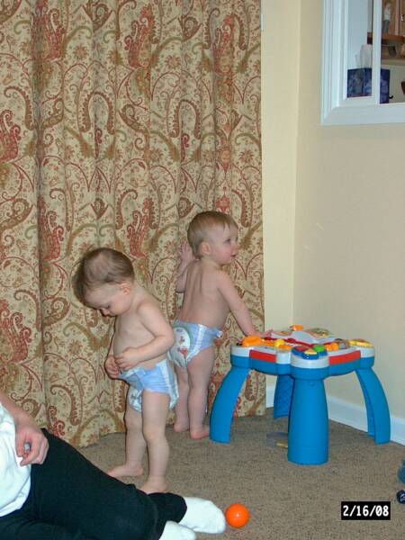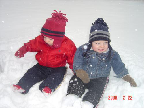 We Are back. It’s been a while but we have been busy trying to keep one step ahead of our brother Luke. He is crawling now and is constantly going after our snacks and drinks. We do not know what we will do once he starts walking. Another thing that has happened is that our speaking has improved and we can say PopPop and Pop-E without any trouble. However Grammy and Grandma are another story, so we just call them MeMe and MeMa. We have a lot to report since this update will take us to the end of 2008