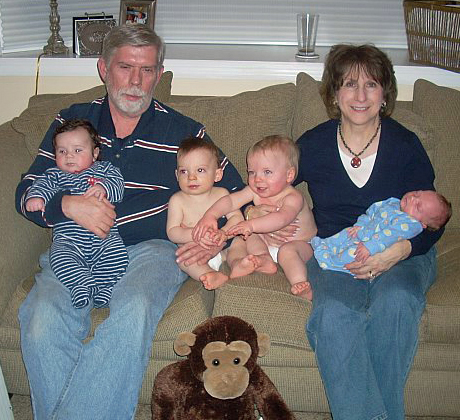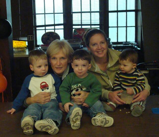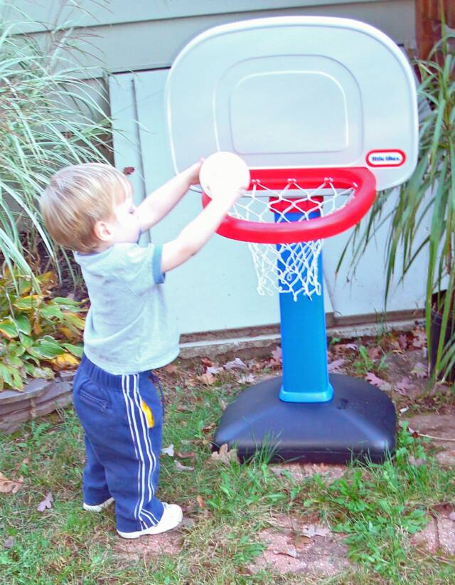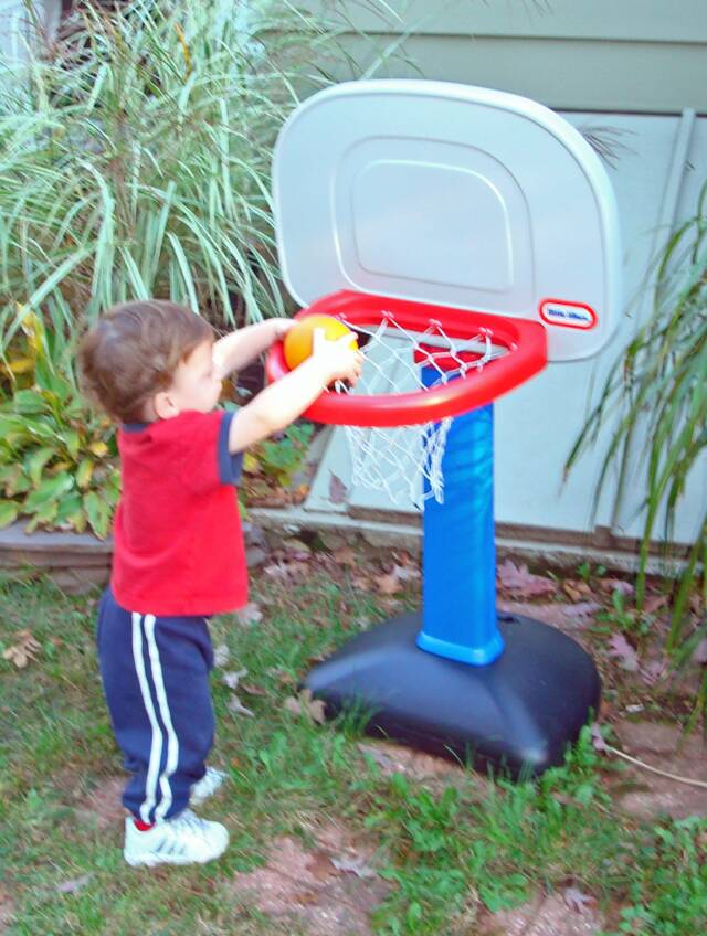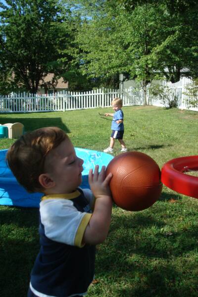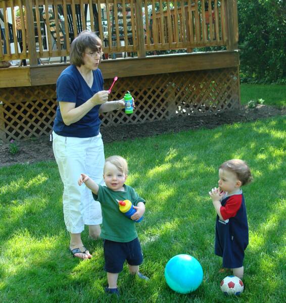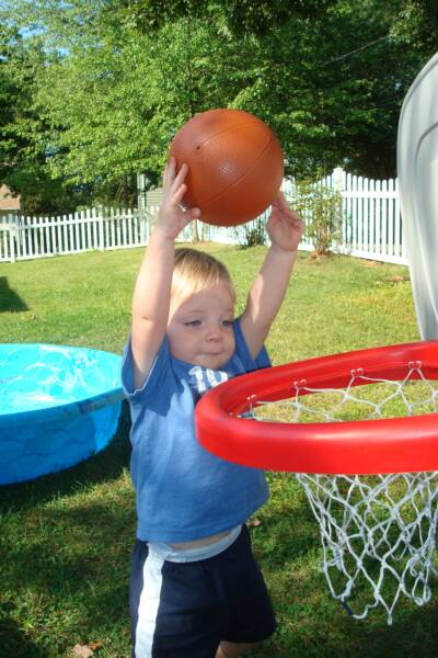 Grandma was busy what with holding Luke and playing "Round Ball-E, Round Ball-E" with me. Daniel was practicing his "Dunk" shots to get ready for our Basketball paying days. And Luke was laughing and saying he could not wait to start having fun playing with us.