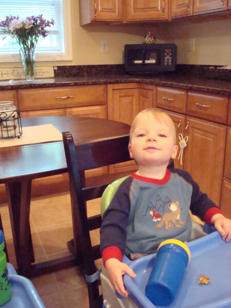 Christopher and I were having a contest to see who was going to say the 1st 2 word combination. Christopher won by saying “BE HAPPY” – not bad for someone not yet 2.
