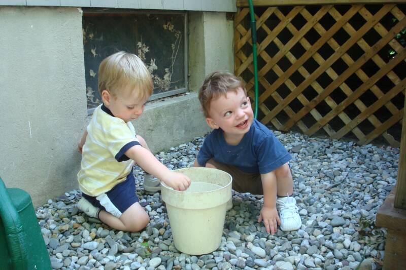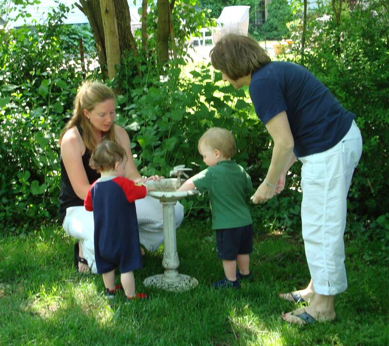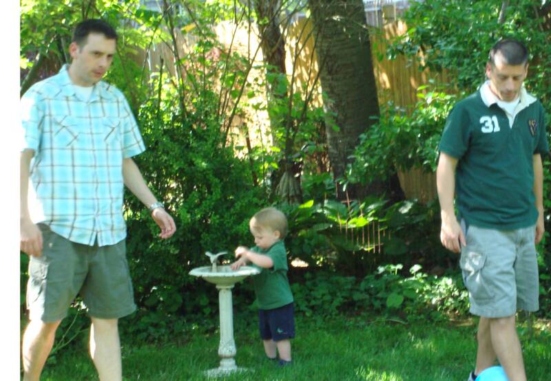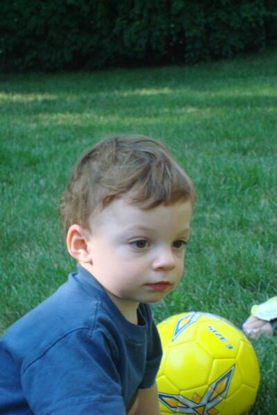 Went to Grandma and Pop-E's for another BBQ - it seem like Uncle Scott always does the cooking. Mommy and Grandma tried to explain to us why we should not play in the "dirty" bird bath water - of course Daniel really listened even when Daddy and Uncle Scott were showing us how to kick a ball.