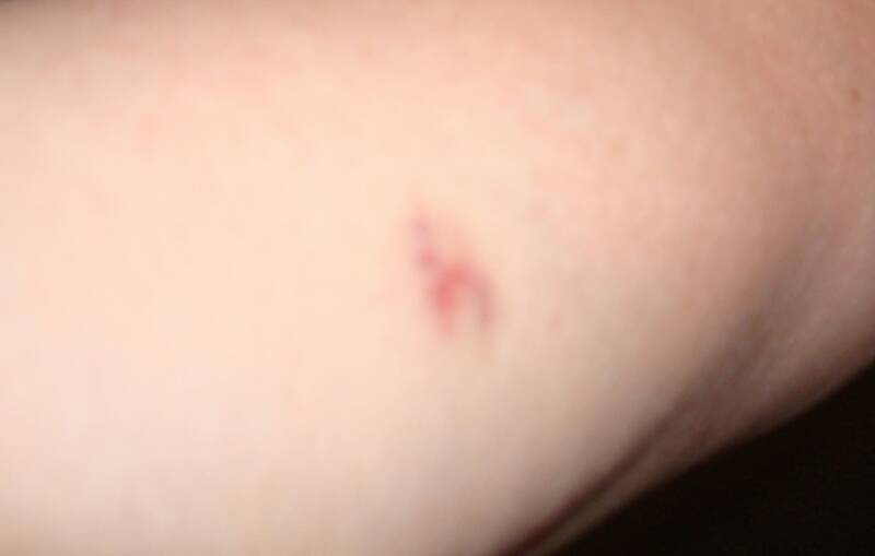 We were sitting on the deck and I was playing with Pop-E when all of a sudden I got a hunger sensation, You know what they say about swimming, water, sun, sand, breezes - they all make you hunger. I must have been thinking about a nice portion of BBQ ribs and the next think I remember was Pop-E yelling. I had mistaken his arm for the BBQ ribs. Because Pop-E knew that I did not mean to bit him - Daniel has that reputation - but when we saw the mark, I understood why he yelled.