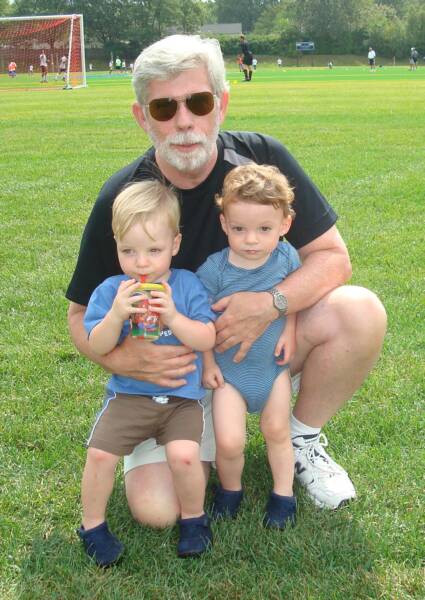 Today was Uncle Scott's soccer teams's opening game of the 2008 season. He was playing Governor Livingston at GL's field. He has never beaten them since he has been the head coach of New Providence. We went with Daddy and met Pop-E in the parking lot. Pop-E open the trunk to get the 2 seater stroller out of the van and there was no seats for the stroller. Daddy had to find a parking stop so Pop-E started to walk us towards the field. Well we got to the top of this hill and we noticed that the field is all the way down at the bottom. We both said this will be fun going down but coming back up was going to be a problem unless Daddy and Pop-E were going to carry us. Pop-E's response to that was "DREAM ON!"