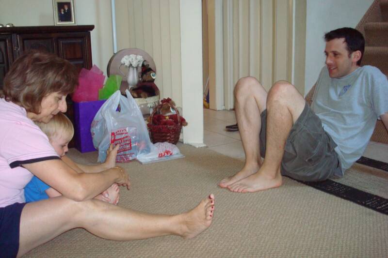 Grandma show us a new game which you play with toes. Daddy seemed to know about it but we did not have a clue.