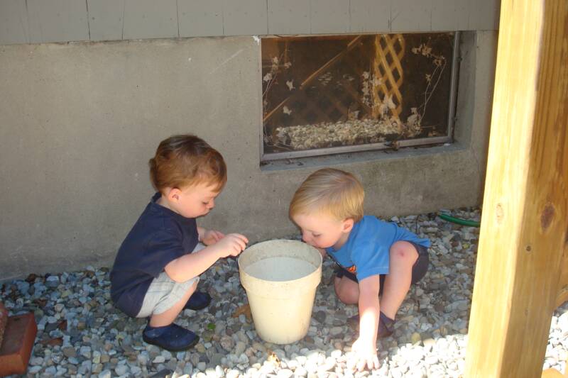 While Luke was napping we were in the backyard practicing some of our "Dunk Shots". After a quick drink, Grandma and Pop-E took us for a walk and as soon as we saw Grammy and PopPop's house we knew we were near the park and started to point to it - which means we want to go there.