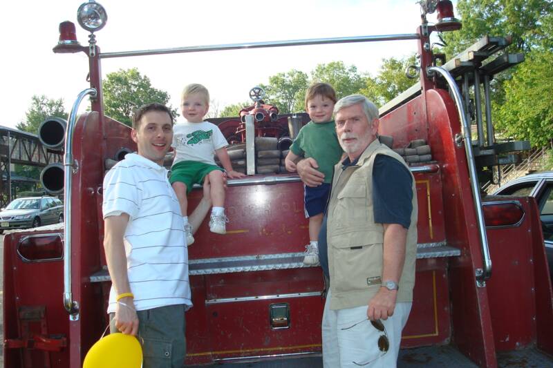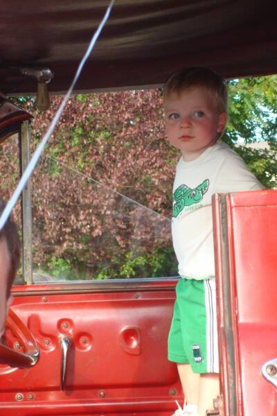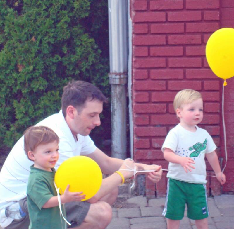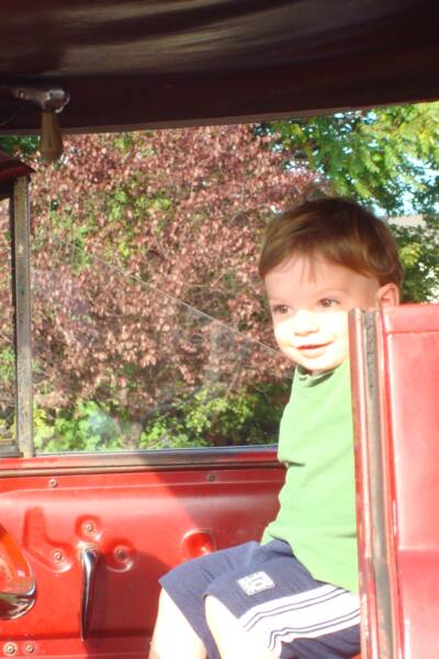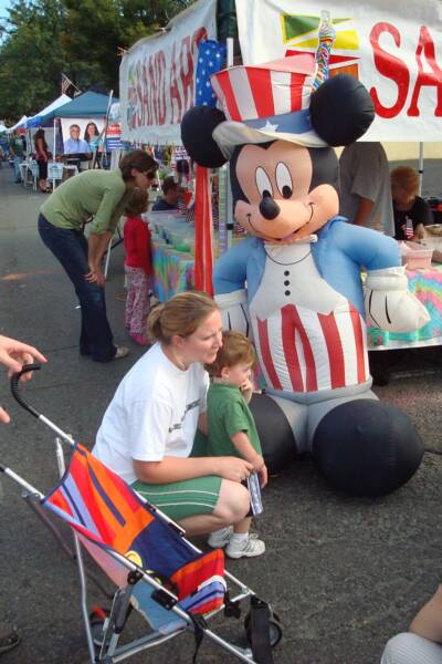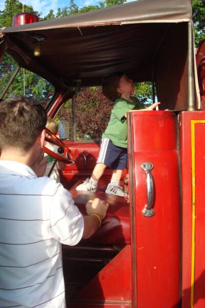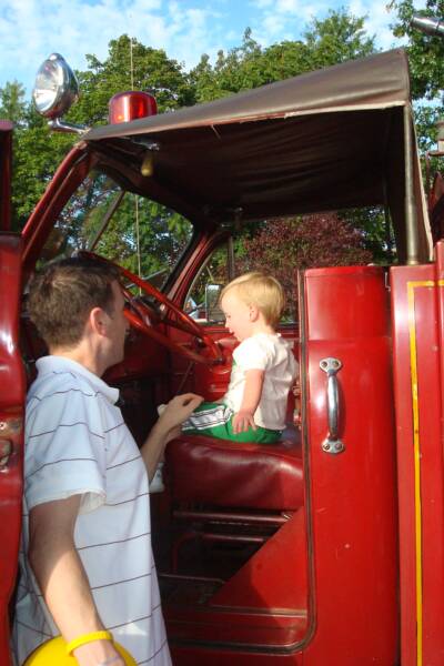Mommy, Daddy and the 3 of us went to the Fanwood Street Fair to meet Grandma and Pop-E. We saw rides, a big Mickey Mouse, and got balloons. Also we got to go on a big Fire Truck. We also went to a restaurant and had good old Italian food - they probably ran out of BBQ. Of course Luke was there but since he did not take his nap he was just content to sit in his stroller and stare