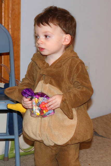 We celebrated Halloween at Aunt Janice and Uncle Jimmy house with our cousins (mommy's side of the family). We finally figured out that we were MONKEYS and of course Luke was a CHICKEN – We Think!