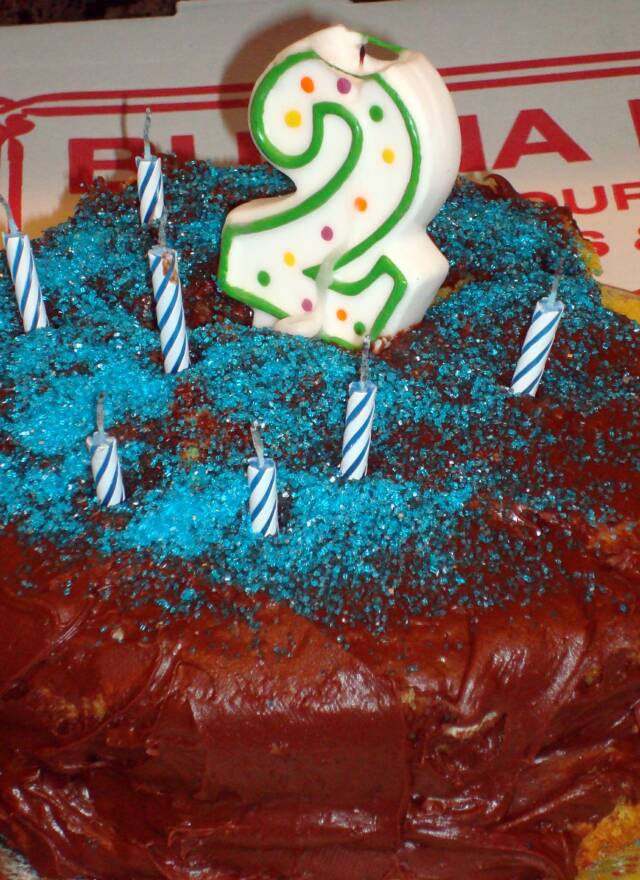 We are celebrating at Grandma house because Mommy and Granny are still in Arizona. We had a BBQ with Uncle Scott doing the cooking - as usual