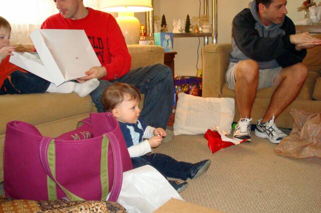 Mommy and Daddy were going to another Christmas party and decided that they need a break from us – you would think we were difficult to take care of. Anyway, Christopher and I were watched by MeMe and PopPop at our house while Luke was shipped to MeMa and Pop-E’s. The party was in the afternoon and when Mommy and Daddy came home Daddy took me to get Luke. Notice no pictures of Christopher – he was still napping at home.